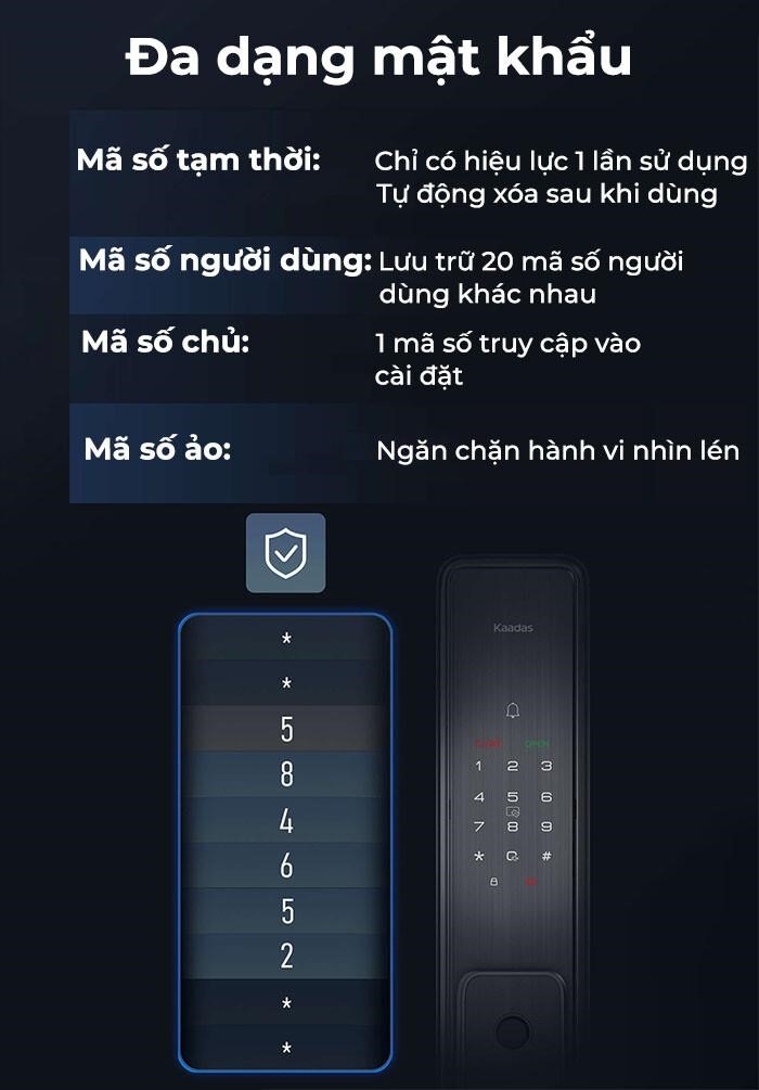 Kaadas Q3 còn được trang bị các tính năng bảo mật tiêu chuẩn cao