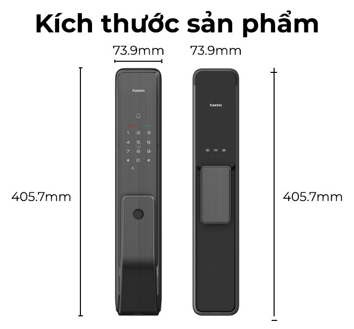Không chỉ tiện lợi, Kaadas Q3 còn chinh phục khách hàng nhờ thiết kế chắc chắn, hài hòa. Kích thước khóa có thể lắp đặt cho đa dạng hệ cửa phổ biến hiện nay